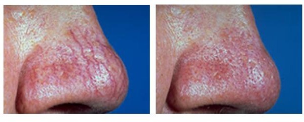 verwijde bloedvaten in het gezicht en halsstreek of op het
